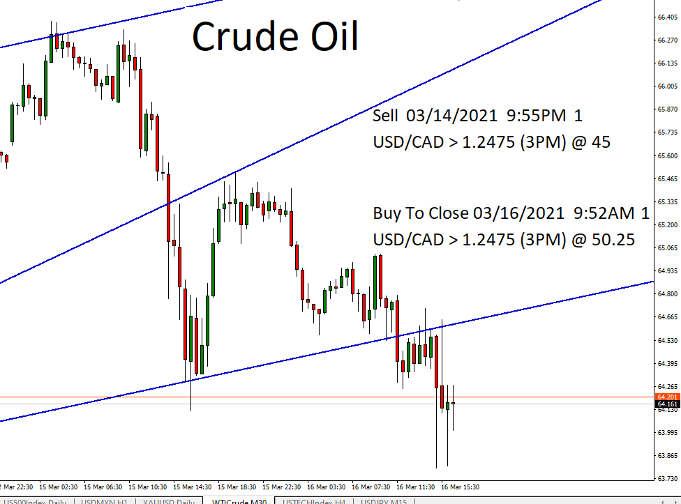 Also sold a USD/CAD Weekly option (Crude oil chart is shown – CAD tends to track crude prices)
