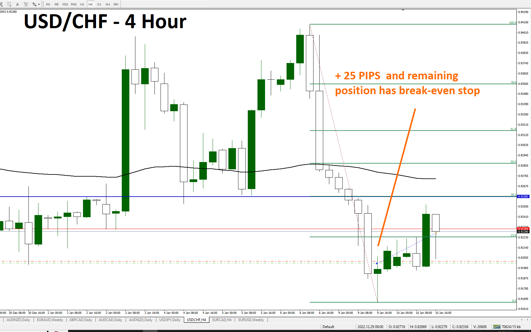 We brought the stop loss into profit. This morning the trade was stopped out for 100+ PIPS profit