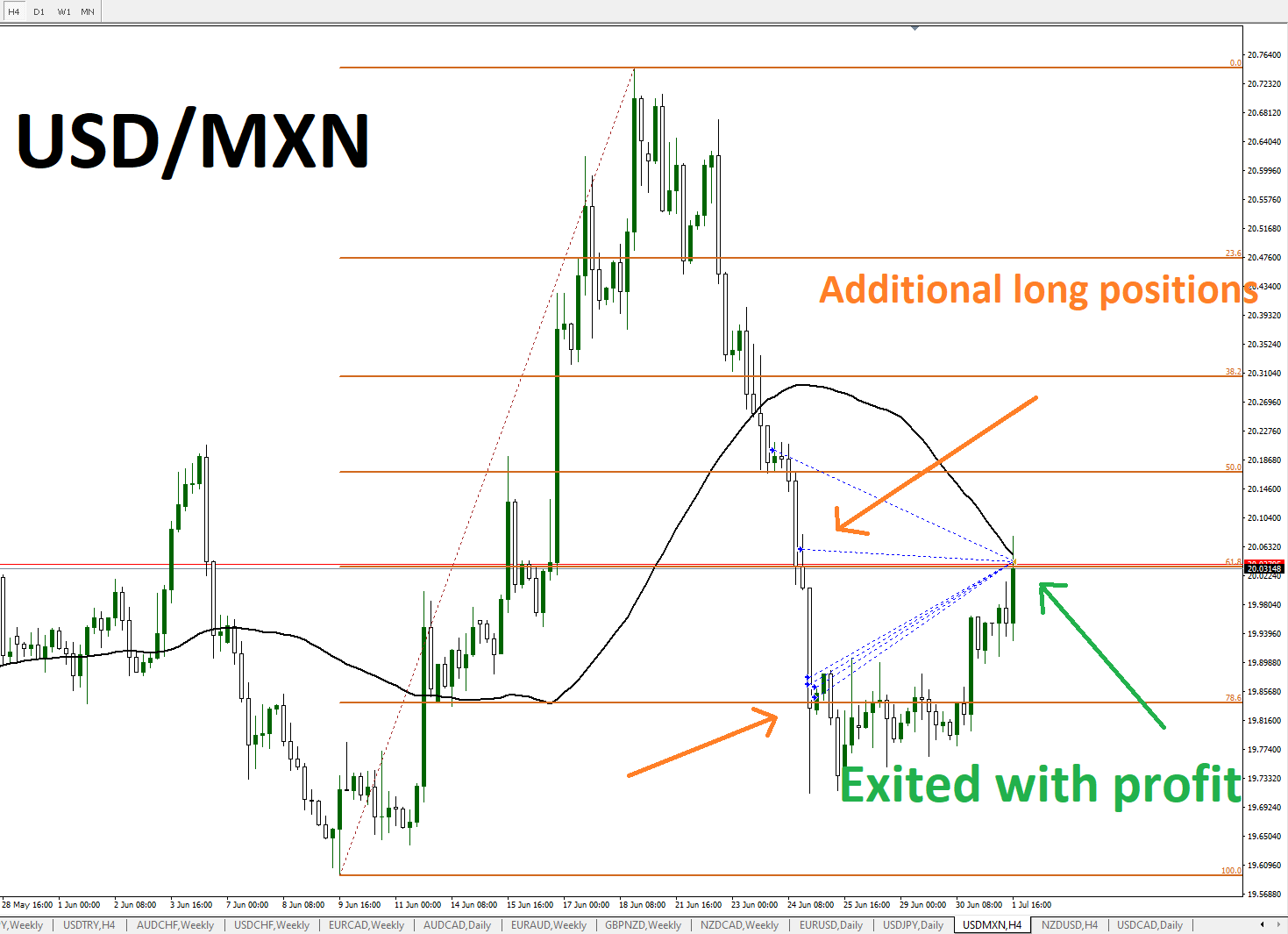 Price eventually moved back up to the 61.8 area and they were all exited manually.