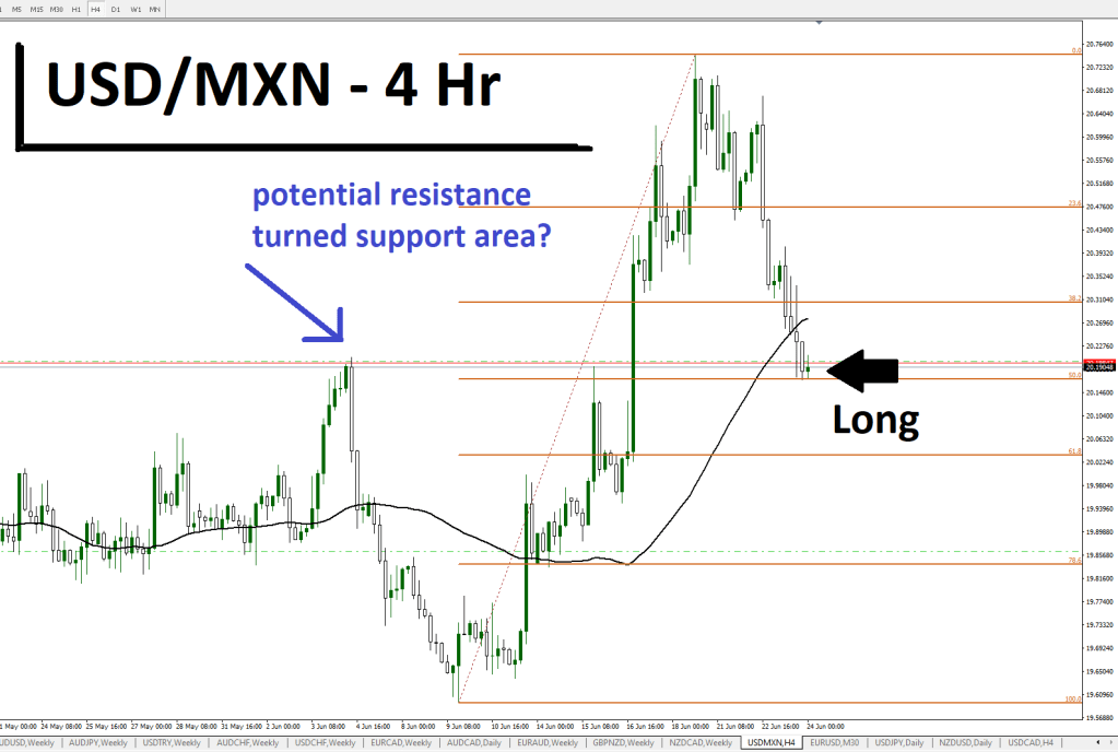 USD/MXN – Long Trade Posted on 06/23/2021 by Admin in Uncategorized I took a small position so I wouldn’t have an issue holding it over the weekend or longer depending on how the price action unfolds Share this:Tweet Click to email a link to a friend (Opens in new window) Email PostLike Loading...