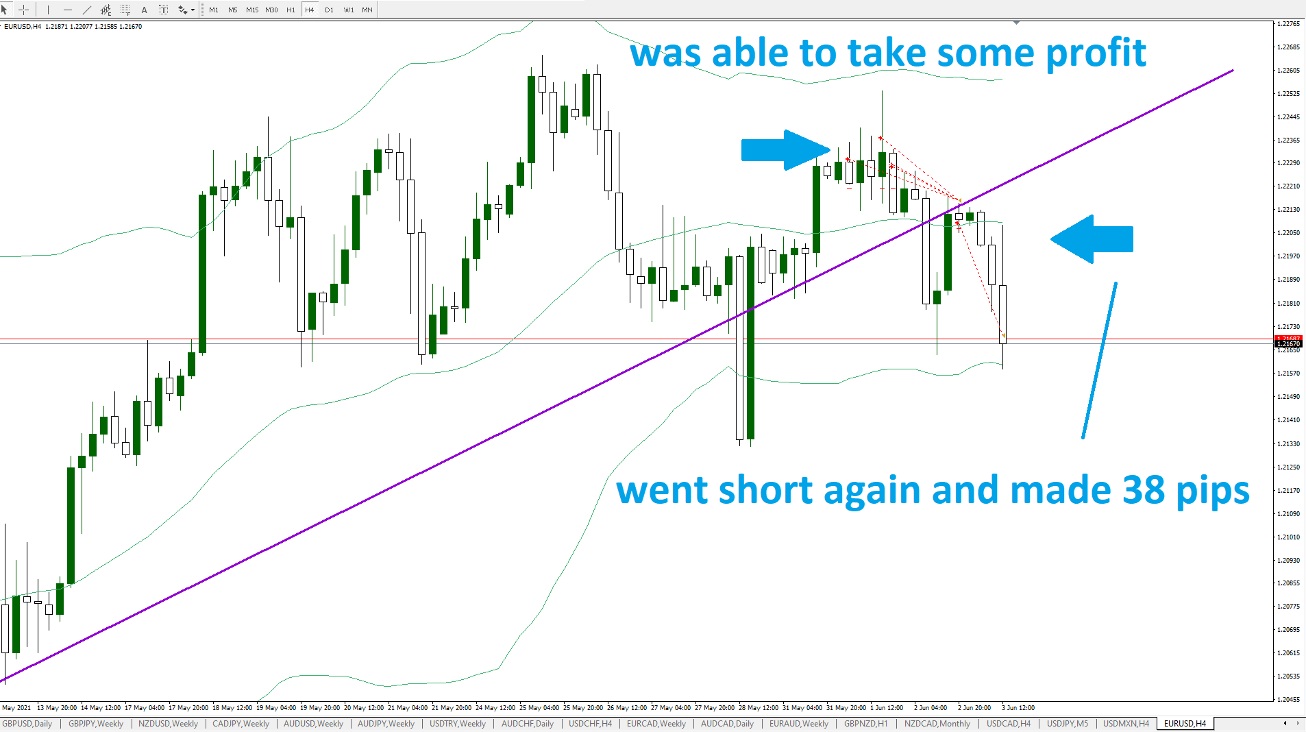 EUR/USD short trade – 4 Hr Chart – Result Posted on 06/03/2021 by Admin in Uncategorized Note that if I had a breakeven stop on the last trade I would have been stopped out before the move lower Took some profit on the trades in the last post and was able to make another 38 pips Share this:Tweet Click to email a link to a friend (Opens in new window) Email PostLike Loading...