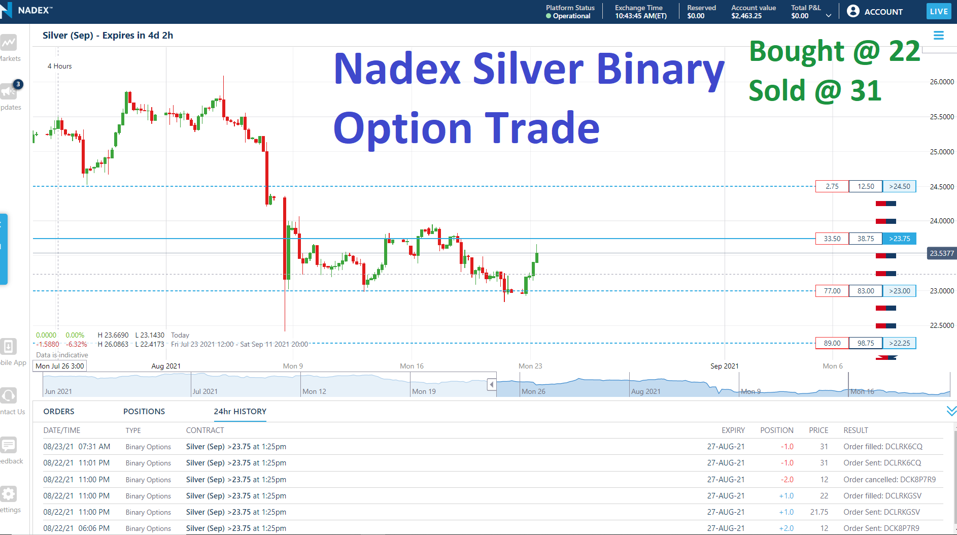 Nadex Silver Binary Option Trade