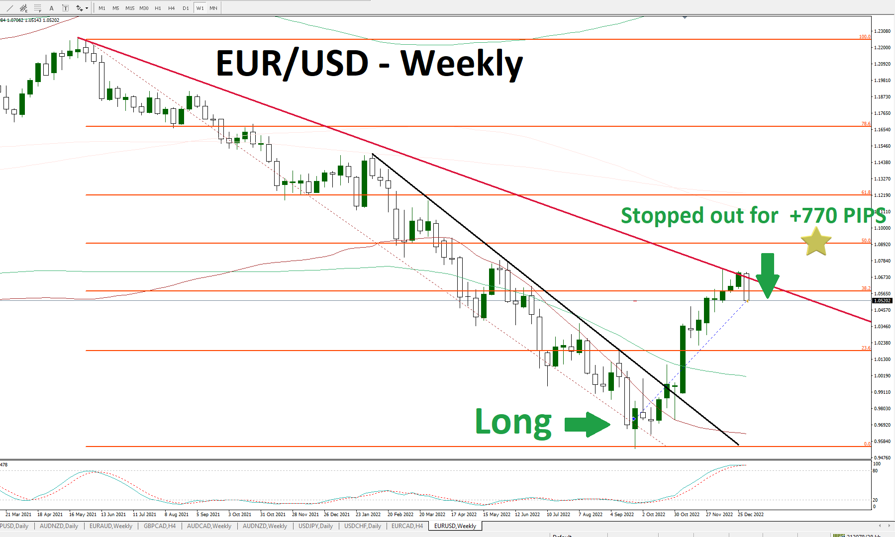 This trade lasted about 15 weeks. One standard Lot would equate to about $7,700. So even if you are not able to commit substantial time to actively trading, a part time – but serious- trader could have earned this in their side business.